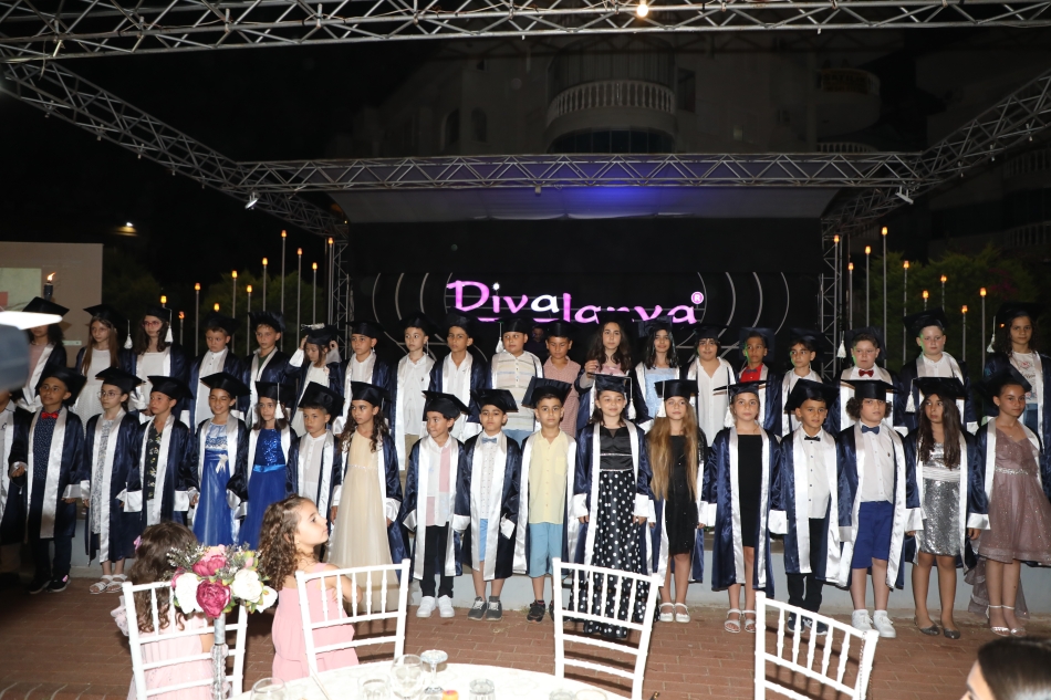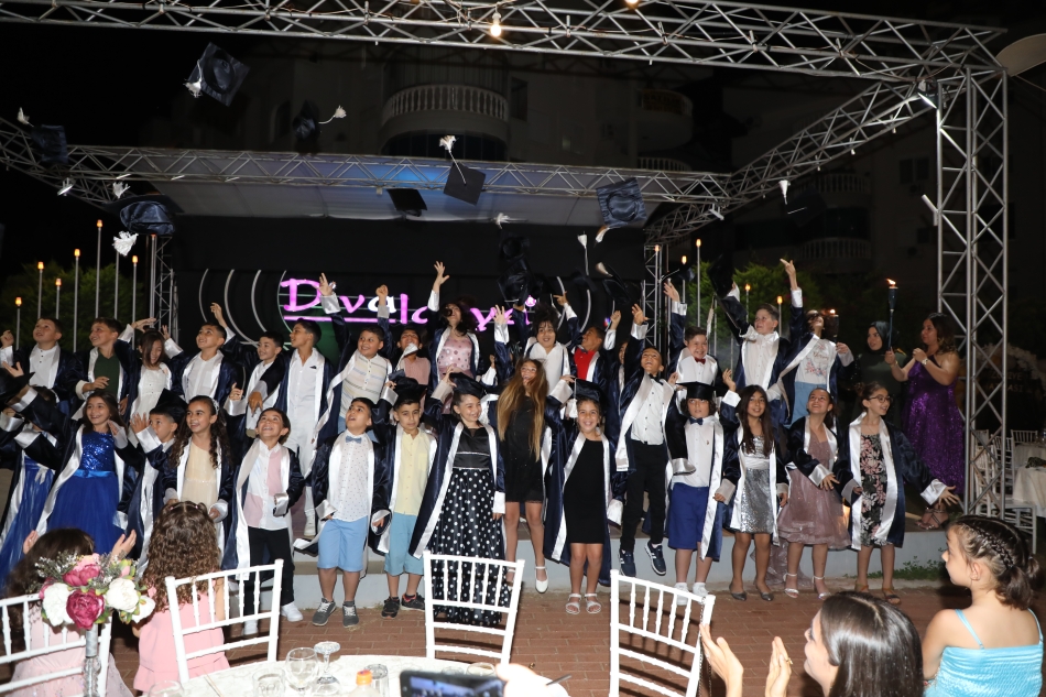 Kemal Şuberi İlkokulu 4-B sınıfı öğrencileri, Divalanya Recreation Center'da düzenlenen mezuniyet gecesinde kep fırlatarak doyasıya eğlendi.