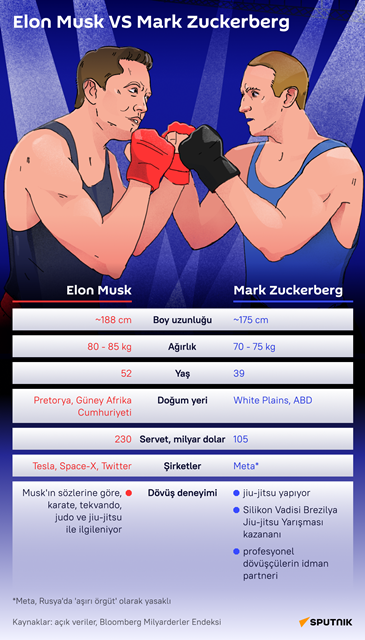 Musk 21 Haziran’da Twitter'a yazdığı mesajda Zuckerberg ile “kafes dövüşüne hazır olduğunu” söylemiş, ciddi olmadığını gösterir biçimde ‘lol’ (sesli gülme kısaltması) yapmıştı.