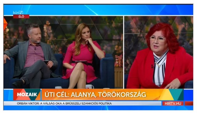 Alanya aşığı ve Alanya Turizm Tanıtma Vakfı’nın Macaristan’daki tanıtım elçisi Szilviá Szeszler, 10 milyon nüfuslu ülkesinin reyting rekorları kıran ulusal TV kanalı HirTV’de Alanya’yı anlattı. Haftada 1 kez yayınlanan, milyonlarca izleyici kitlesi olan Mozaik isimli talk show programının canlı yayın konuğu olan Szeszler, Alanya videoları eşliğinde şehrin tanıtımına önemli katkı sağladı. Alanya için küçük büyük her pazarın önemli olduğunu söyleyen ALTAV ve Alanya Turistik İşletmeciler Derneği (ALTİD) Başkan Yardımcısı Mehmet Dahaoğlu, “Macaristan’ın Başkenti Budapeşte’de düzenlenen uluslararası turizm fuarındaki Alanya standında tanımış olduğumuz Gazeteci Szilviá Szeszler, ülkesinde son 6 yıldır Alanya tanıtımı için elinden geleni yapıyor. Her yıl Alanya’ya gelerek edindiği bilgileri ve deneyimleri Macar izleyicisi ve okurlarıyla paylaşıyor. ALTAV aracılığıyla Alanya’yı keşfetmesinden sonra tam bir Alanya aşığı ve Alanya’nın tanıtım elçisi haline gelen Szeszler, aynı zamanda Macar basını ile aramızda köprü görevi görerek farklı basın mensuplarının da Alanya’ya gelerek tanıtım çalışmalarımıza katkı yapmasını sağlıyor” dedi.