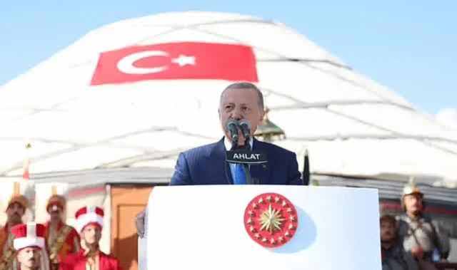 Tarihimizde ‘zaferler ayı’ olarak geçen ağustos ayını anlamına ve önemine uygun şekilde hep birlikte idrak ettiğimizi söyleyen Erdoğan, “Bugün Ahlat’tayız. Yarın inşallah Malazgirt’te olacağız. 30 Ağustos’u Ankara’da kutlayacağız. Ardından 85 milyon olarak 29 Ekim’de cumhuriyetimizin 100. yılına ulaşmasının sevincini yaşayacağız. Geçmişten ders çıkartarak, ibret alarak daha müreffeh ve daha güçlü bir geleceğe yürüyeceğiz. Tarihimizde çok önemli bir kilometre taşını ifade eden bu seneyi iyi şekilde değerlendirmenin gayretindeyiz. Zaferlerimizin ve gurur günlerimizin her birinde ülkemizde yeni dönemin milletimizin fertleri arasında yeni bir kucaklaşmanın zemini haline getirmek istiyoruz. 6 Şubat’ta asrın felaketi olan depremlerle sarsıldığımız, akabinde rekabet seviyesi yüksek bir seçim geçirdiğimiz bu süreçte Türkiye olarak böyle bir kardeşlik seferberliğine ihtiyaç duyuyoruz” diye konuştu.
