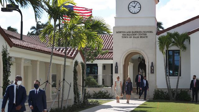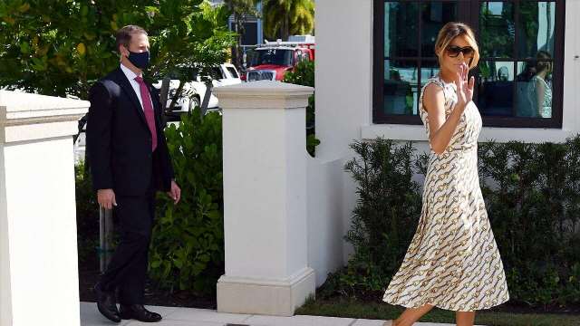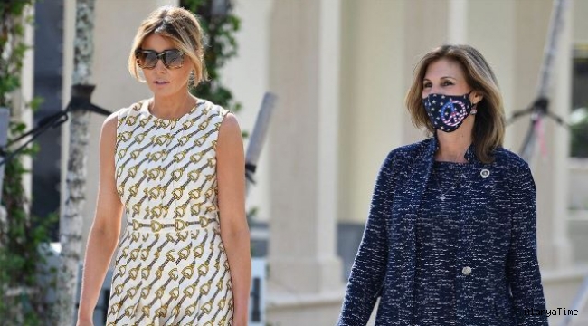 First Lady Melania Trump , Seçim Günü oy verirken , diğer çok pahallı moda aksesuarlarının yanı sıra binicilik baskılı beyaz bir elbise giymişti. Trump, Salı sabahı Mar-a-Lago yakınlarındaki Florida'daki Palm Beach'teki bir seçim merkezinde oyunu kullandı.