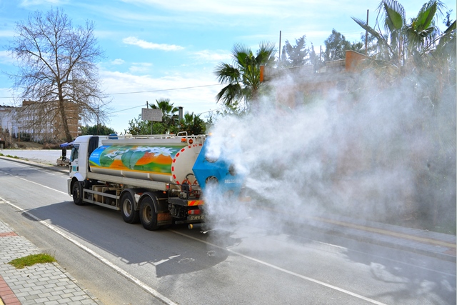 Verdiği hizmetlerle kalitesini ve vizyon farkını her alanda ortaya koyan Alanya Belediyesi, hafta sonu kısıtlamasını da fırsata çevirerek kent genelinde hizmetlerine devam ediyor. Alanya Belediyesi Temizlik İşleri Müdürlüğü bünyesine COVID-19 salgınının ardından dahil edilen ve hizmet verdiği bölgede 30 metre çapında dezenfeksiyon yapabilme kabiliyetine sahip Mikronsis aracı, hafta sonu kısıtlamasında da merkez ve kırsal mahallelerde hizmet vermeyi sürdürüyor. Kısıtlama nedeniyle sokakların boş olması hem trafik hem de dezenfeksiyon hizmetinin kalıcılığını arttırması anlamında fırsat niteliği taşıyor. Ekipler, hafta içinde sürdürdükleri hizmeti hafta sonunda da devam ettiriyor.