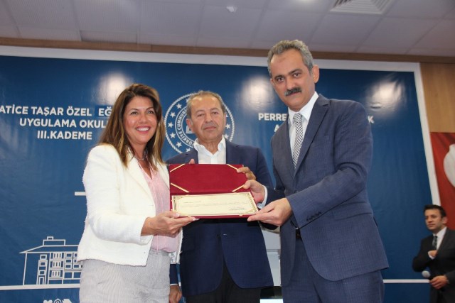 Perre Mesleki ve Teknik Anadolu Lisesi Uygulama Oteli'nde gerçekleşen açılış töreni sonrasında Taşar Ailesi'ne yaptıkları okul için teşekkür plaketi takdim eden Bakan Özer'e Adıyaman Milli Eğitim Müdürlüğü tarafından hem kendisin hem de mozaik sanatıyla yapılmış tablo hediye edildi.