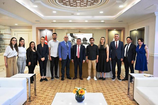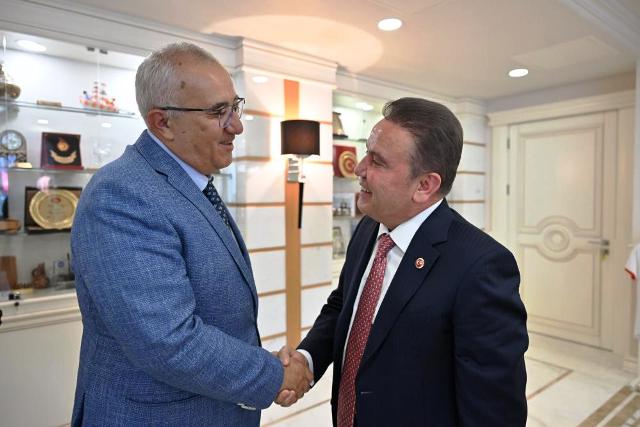 Antalya Büyükşehir Belediye Başkanı ve Cittaslow Türkiye Koordinatörü Muhittin Böcek, "Sakin Şehir" (Cittaslow) ünvanını almaya hak kazanan Denizli'nin Çameli ilçesi Belediye Başkanı Cengiz Arslan'ı kabul etti.