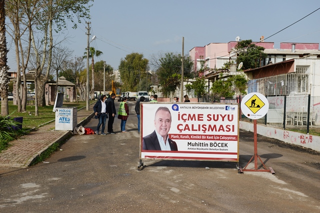 Antalya Büyükşehir Belediyesi, Kepez ve Muratpaşa ilçelerinde hayata geçireceği 49 milyon liralık dev içme suyu yatırımı için ilk kazmayı 22 Mart Dünya Su Günü’nde vurdu. Kepez’de 54, Muratpaşa’da 47 olmak üzere toplam 101 mahallede asbestli borular yerine sağlıklı içme suyu boruları döşenecek, sık arızalanan eskimiş ana hatlar yenilenecek. Başkan Muhittin Böcek, Antalya’da bu şekilde bir çalışmanın daha önce yapılmadığını ve ilk kez hayata geçirildiğini söyledi. Proje ile 150 km ana hat, 120 km şube yolu ve 21 bin adet abone bağlantısı yapılacak, iki ilçenin 50 yıllık ihtiyacı karşılanacak.