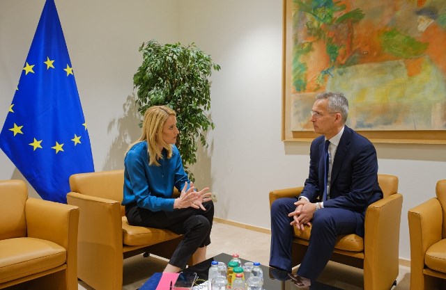 Stoltenberg ve Metsola AP Başkanlar Konferansı'nın ardından ortak basın toplantısı düzenledi. Stoltenberg yaptığı açıklamada NATO ve AB'nin Ukrayna ile dayanışma içinde birlikte hareket ettiğini ifade ederek, AB'nin Rusya'ya yönelik uyguladığı güçlü ekonomik yaptırımları memnuniyetle karşıladığını belirtti. Stoltenberg, NATO müttefiklerinin bugüne kadar Ukrayna'ya en az 8 milyar dolar askeri destek sözü verdiğini ve bunu sağladığını söyledi.