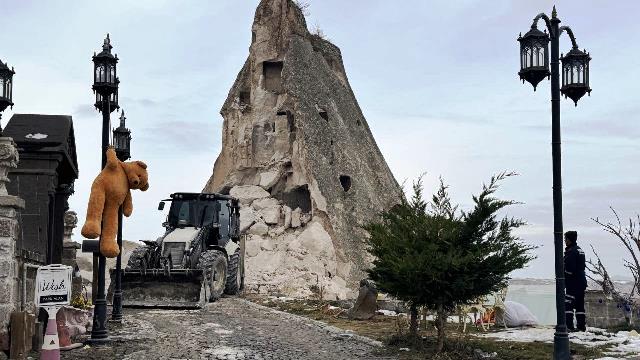 Türkiye'nin önemli turizm merkezlerinden Kapadokya'da milyonlarca yıllık peri bacası kısmen yıkıldı.