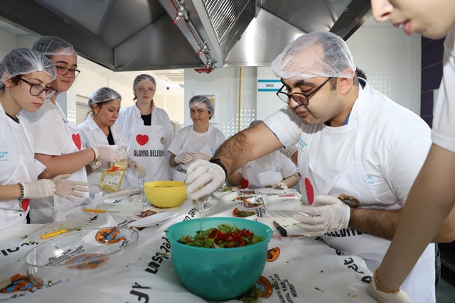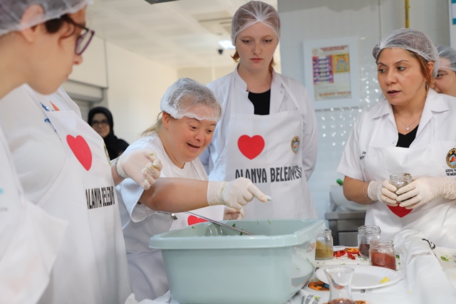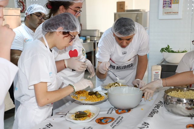 Alanya Belediyesi Engelli Koordinasyon Merkezi üyesi özel bireyler, Engelsiz Mutfak Atölyesi çalışması kapsamında Oba Kız Öğrenci Yurdu mutfağında öğle yemeği menüsü hazırladı.