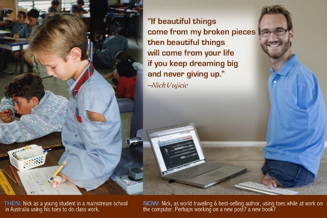 Nicholas James nadir görülen ve bazı uzuvların yokluğu olarak bilinen fokomeli rahatsızlığı ile doğmuş Avustralyalı motivasyon konuşmacısıdır. İki kolu ve iki bacağı doğuştan yoktur. Çocukluğundan beri, okulda çeşitli zorbalıklara uğramıştır. Ancak James motivasyonunu kaybetmemiş ve fonksiyonel olarak bağımsız olmayı başarmıştır. Bütün bunlara rağmen, finansal planlama alanında uzmanlaşarak ticaret bölümünden mezun olmuştur. Bugün dünyaca tanınan, insanlara engelleriyle barışmaları için yardımcı olan ve umut aşılayan bir motivasyon konuşmacısıdır. 1990 yılında ‘Avustralyalı Genç Vatandaş’ ödülünü kazanmış ve insanlara ilham kaynağı olmaya devam etmiştir. James bizim zamanımızda, engeline rağmen başarı merdivenlerini hızla tırmanmış önemli isimlerden biridir.