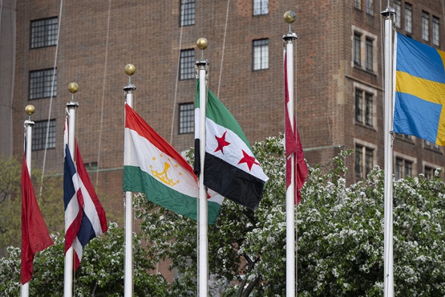 Suriye Dışişleri Bakanı Esad Hasan Şeybani, törende Suriye Arap Cumhuriyeti bayrağını göndere çekti. Şeybani, bu anı "Suriye'nin uluslararası alandaki meşruiyetinin ve diplomatik varlığının teyidi" olarak nitelendirdi. Anadolu Ajansı'na konuşan Şeybani, 14 yıllık iç savaşın acılarına dikkat çekerek, "Elbette bu tarihi bir an" dedi.