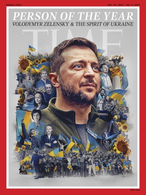 Time dergisi, Ukrayna Devlet Başkanı Vladimir Zelenskiy'nin Ukraynalılara ilham vererek, Rusya'nın yıkıcı işgaline karşı gösterdiği cesareti ve liderliğinden dolayı "Yılın Kişisi" seçildiğini duyurdu. Time dergisi tarafından yapılan açıklamada, "Bu yılki seçim hafızalardaki en net seçimdi. Ukrayna savaşı insanı ister umutla, ister korkuyla doldursun, Zelenskiy on yıllardır görmediğimiz bir şekilde dünyayı harekete geçirdi. 24 Şubat'ta Rus bombalarının düşmeye başlamasından sonraki haftalarda, Kiev'den kaçmama ve destek toplama kararı çok önemliydi. 25 Şubat'ta kabinesinin yerli yerinde olduğunu gösteren ilk 40 saniyelik Instagram gönderisinden parlamentolar, Oscar törenleri, Grammy Ödülleri gibi salonlara uzaktan yaptığı konuşmalara kadar her yerdeydi. Dünyayı kasıp kavuran bir eylem dalgası başlattı" denildi.