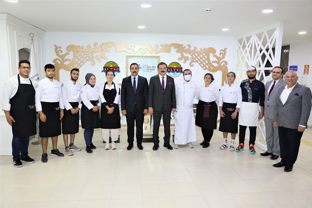 Ardından TOBB heyeti, ALTSO tarafından Kestel Yerleşkesine yaptırılan ALTSO Turizm Meslek Yüksekokulu binasına giderek incelemelerde bulundu. Hisarcıklıoğlu ve Rektör Kalan, ALTSO Turizm MYO Otel, Lokanta ve İkram Hizmetleri Bölümü Aşçılık Programı öğrencileri tarafından hazırlanan ikramlardan tattılar. Hisarcıklıoğlu, öğrenciler tarafından hazırlanan tadımlıkları başarılı bulduğunu ifade etti. Ziyaretlerin ardından basın mensuplarına açıklamalarda bulunan TOBB Başkanı Hisarcıklıoğlu, “Alanya Alaaddin Keykubat Üniversitesi ALTSO Turizm Meslek Yüksekokulu özellikle Alanya ile tam bütünleşik bir iş. Alanya aynı zamanda hem turizm hem de tarım kenti. Bu kapsamda Alanya Ticaret ve Sanayi Odamızın üniversitemize sağladığı katkıdan dolayı çok teşekkür ederim.” dedi.