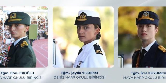 Kara Harp Okulu'ndan Teğmen Ebru Eroğlu, Hava Harp Okulu'ndan Teğmen İkra Kuyumcu ve Deniz Harp Okulu'ndan Teğmen Şeyda Yıldırım, eğitimlerini birincilikle tamamlayarak TSK tarihinde bir ilke imza attılar.