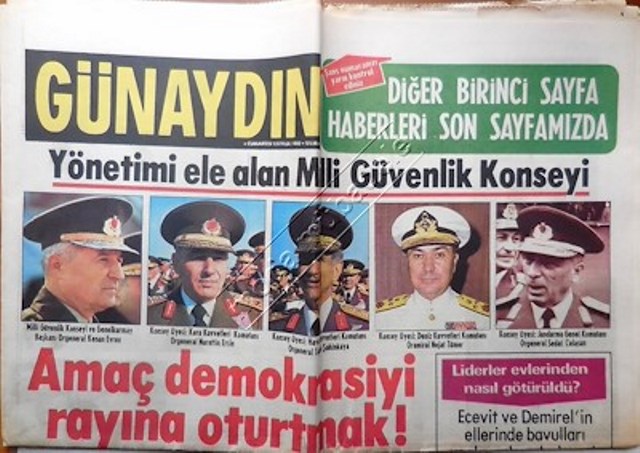 Darbeciler Evren, Kara Kuvvetleri Komutanı Orgeneral Nurettin Ersin, Hava Kuvvetleri Komutanı Orgeneral Tahsin Şahinkaya, Deniz Kuvvetleri Komutanı Oramiral Nejat Tümer ve Jandarma Genel Komutanı Orgeneral Sedat Celasun'dan oluşan Milli Güvenlik Konseyi, bütün yetkileri ele aldı.