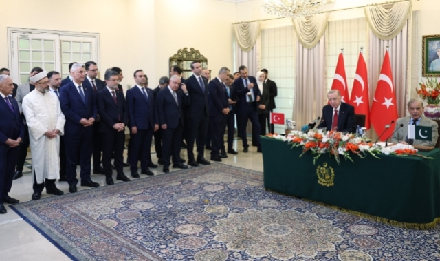 Cumhurbaşkanı Recep Tayyip Erdoğan ile Pakistan Başbakanı Şahbaz Şerif, "Stratejik Ortaklığın Derinleştirilmesi, Çeşitlendirilmesi ve Kurumsallaştırılması" bildirisine imza atarken, iki ülke arasında farklı alanlarda 24 iş birliği anlaşması da imzalandı.
