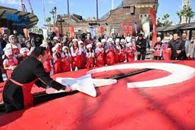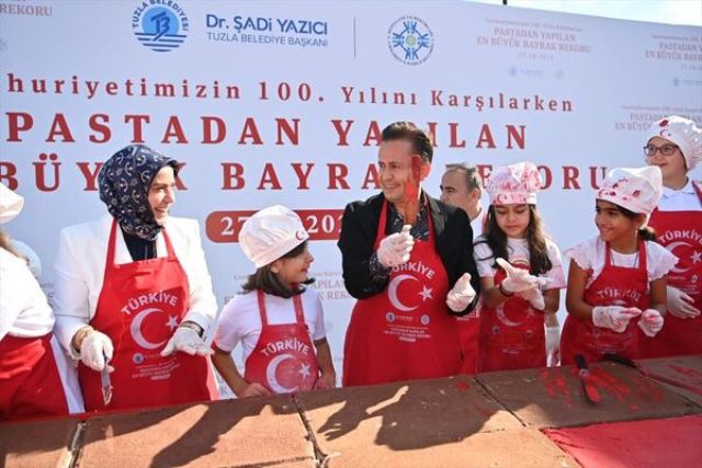 Tuzla'da 29 Ekim Cumhuriyet Bayramı'nın 99'uncu yıl dönümü özel bir program ile kutlandı. Programa, Tuzla Belediye Başkanı Dr. Şadi Yazıcı eşi Dr. Fatma Yazıcı, onlarca çocuk ve aileleri katıldı. Düzenlenen renkli programda, Tuzlalı minikler, yaptıkları 100 parçadan oluşan 24 metrekarelik pastayı birleştirerek Türk Bayrağı oluşturdu. Etkinlik çerçevesinde birleştirilen dev pasta, ‘Pastadan Yapılan En Büyük Bayrak' özelliği ile Guinness Çocuk Rekoru kitabında yerini aldı. Çocukların şefler eşliğinde minik elleriyle hazırladıkları dev pasta yapımı renkli görüntülere sahne oldu. Minik eller tarafından yapılan Türk Bayraklı pasta ölçüm işlemi tamamlandıktan sonra kesilerek, İstanbullulara dağıtıldı. Öte yandan 100 parça 24 metrekarelik Türk Bayrağından oluşan dev pasta havadan dron ile görüntülendi.