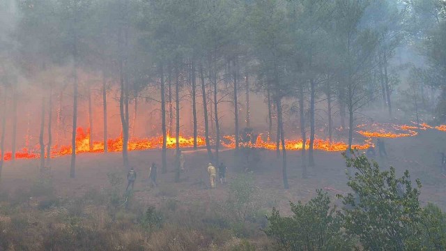 Rüzgarın etkisini sürdürdüğü bölgede ekipler, yangını kontrol altına almak için çalışmalarını sürdürüyor.