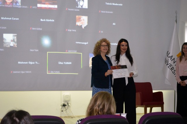 Alanya HEP Üniversitesi Kampüsü Şebnem Köseoğlu Konferans Salonu’nunda yüz yüze ve çevrim içi gerçekleştirilen Ulusal Film Çalışmaları Sempozyumu’na, yüz yüze ve çevrimiçi çok sayıda dinleyici katıldı. Sempozyumun açılış konuşmasını Alanya HEP Üniversitesi Rektör Vekili Prof. Dr. Gülbuğ Erol yaptı. Sempozyuma ev sahipliği yapmaktan dolayı duydukları memnuniyeti dile getiren Prof. Dr. Erol; “Bu sempozyum, bir proje çıktısı. Bir başka özelliği de, sinema çalışmalarının niteliğini arttırmak, özenli sunumlarla sinema sektörünü başarılı yapımlara teşvik etmektir. Gelen bildirilerin hakemlerce değerlendirildiği, sertifika ile ödüllendirildiği, bilimsel nitelikte yarışmalarının olması nedeniyle farklı bir özelliği de var” ifadelerini kullandı. Anadolu Üniversitesi, İletişim Bilimleri Fakültesi Dekan Yardımcısı Doç. Dr. Sevil Bayçu da sempozyumda konuşma yaptı. Bu yıl ilk kez gerçekleştirilen sempozyumun önemine değinen Doç.Dr. Bayutçu, “2023 yılında bu sempozyuma Eskişehir ev sahipliği yapacak. Bundan dolayı hem mutlu hem de gururluyuz” diye konuştu.