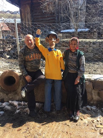 İbrahim Aydın, “Bu köye gelen arkadaşları duyarlı olmaya çağırmak için bu heykeli yaptık. Buraya gelenler maske, mesafe, hijyen kurallarına uymalılar. Köyün girişine koyarak dışardan gelen arkadaşlara bu kuralları hatırlatıyoruz. Köyümüz çok kalabalık, aynı zamanda kurallara oldukça duyarlıyız ancak dışardan gelen arkadaşlar bu duyarlılığı göstermiyor. Onun için de bu heykeli yaptık. Çantasının içine de maske koyduk, gelen misafirlerin maskesi yoksa bu çantadan alabiliyorlar” dedi.