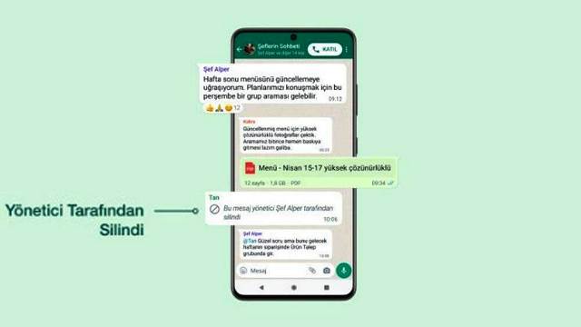 Grup yöneticileri, grupta uygunsuz gördüğü mesajları herkesin sohbet ekranından silebilecek.
