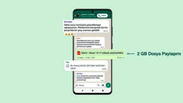 Belki de kullanıcıları en çok sevindirecek haber bu! 100 MB ile sınırlı olan dosya gönderme limiti 2GB’a çıktı. Artık yüksek boyutlu dosyaları da WhatsApp üzerinden rahatça gönderebileceksiniz.