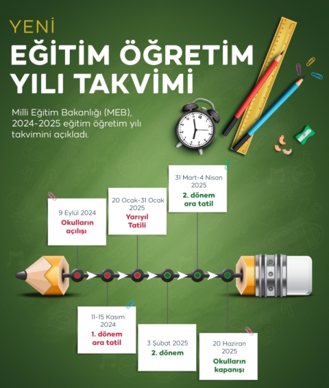 Milli Eğitim Bakanlığı (MEB), 2024-2025 eğitim öğretim yılı takvimini açıkladı.