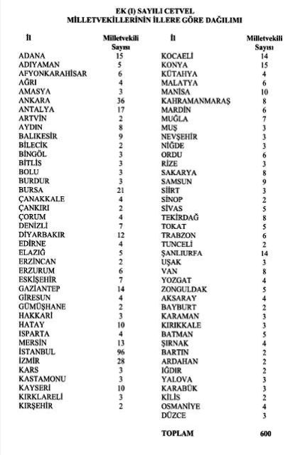 Bursa'nın çıkaracağı milletvekili sayısı 20'den 21'e, Eskişehir'in 6'dan 7'ye, Tunceli ve Bayburt'un çıkaracağı milletvekili sayısı da 1'den 2'ye çıkarıldı.