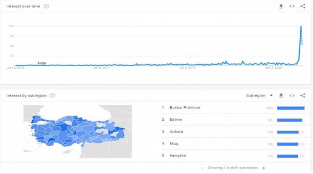 Var olup olmadığını bilmediğimiz Z-kuşağı siyaseten bu kadar cazip hale gelince, onu daha yakından tanımak için harcanan çabanın da hacmi arttı. Aşağıda yer alan grafik, Google’da yapılan “z kuşağı” aramalarının son bir ayda nasıl sıçradığını gösteriyor, önceki beş yıl boyunca kimse konuyu merak etmemiş bile.